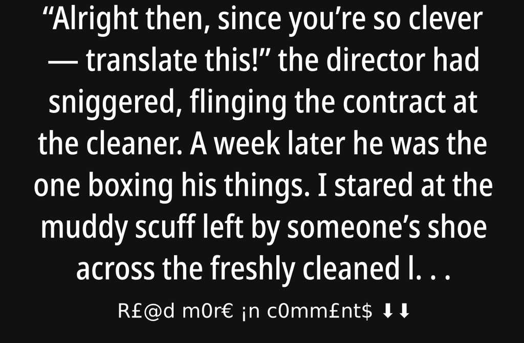 Alright then, since youre so clever translate this! the director had sniggered, flinging the contract at the cleaner. A week later he was the one boxing his things.