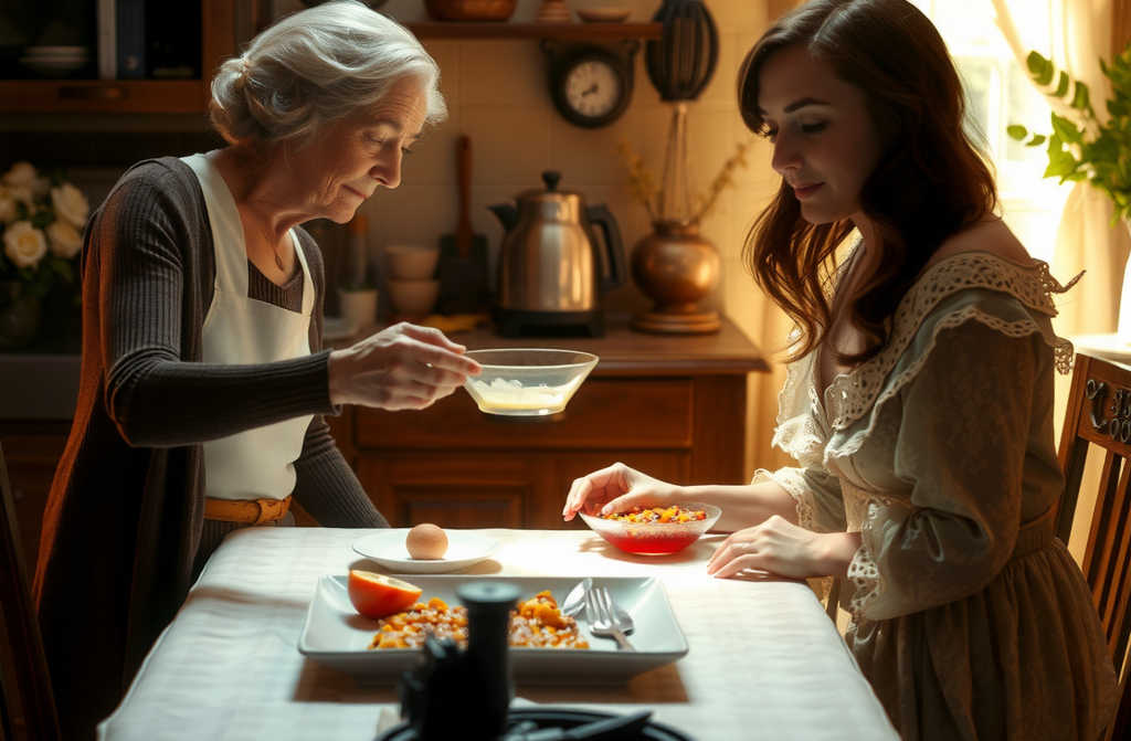 Margaret stood there, clutching her old wooden spoon beside a plain pine table, clothed with a timeworn, but spotless tablecloth. The little kitchen was imbued with the warm smells of roast and freshly-baked breada typical, comforting rural English evening. A golden glow hung in the air, gentle and comforting, rather like Margaret herself.