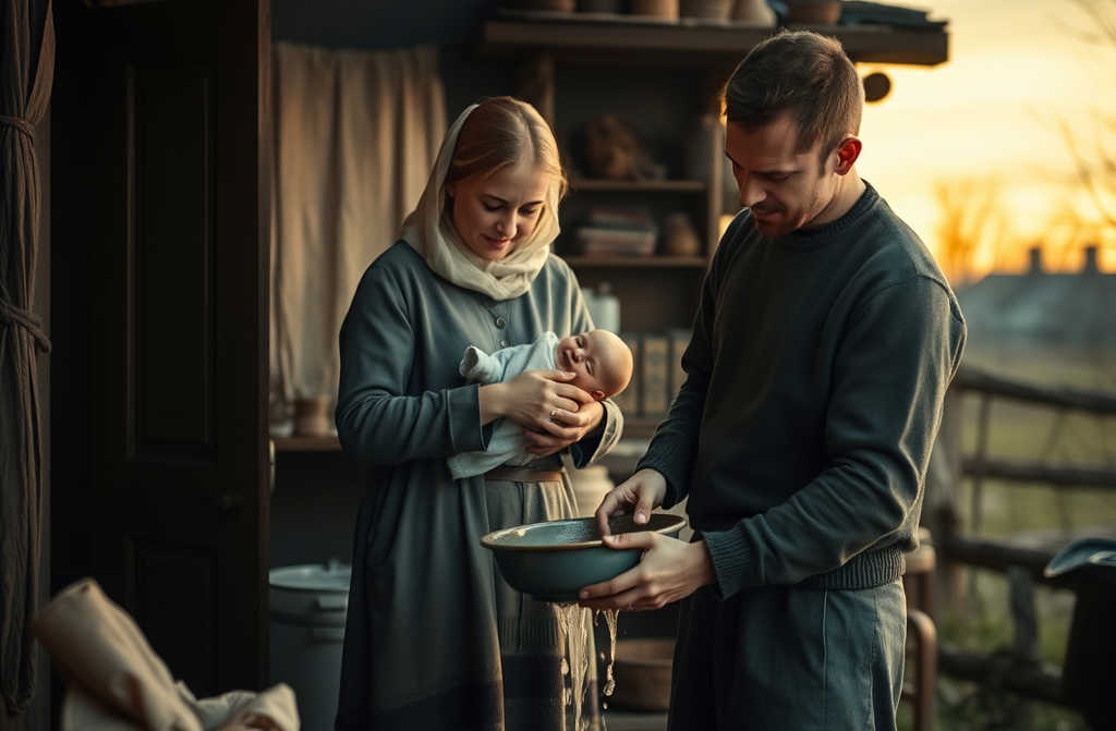 Seeing her plight, Thomas rushed over, took the baby and tucked him in the cot, fetched a pot of hot water from the hearth, sat Evelyn down, helped her undress, and washed her feet. As she changed behind the stove, he placed boiled potatoes and a jug of milk on the table.