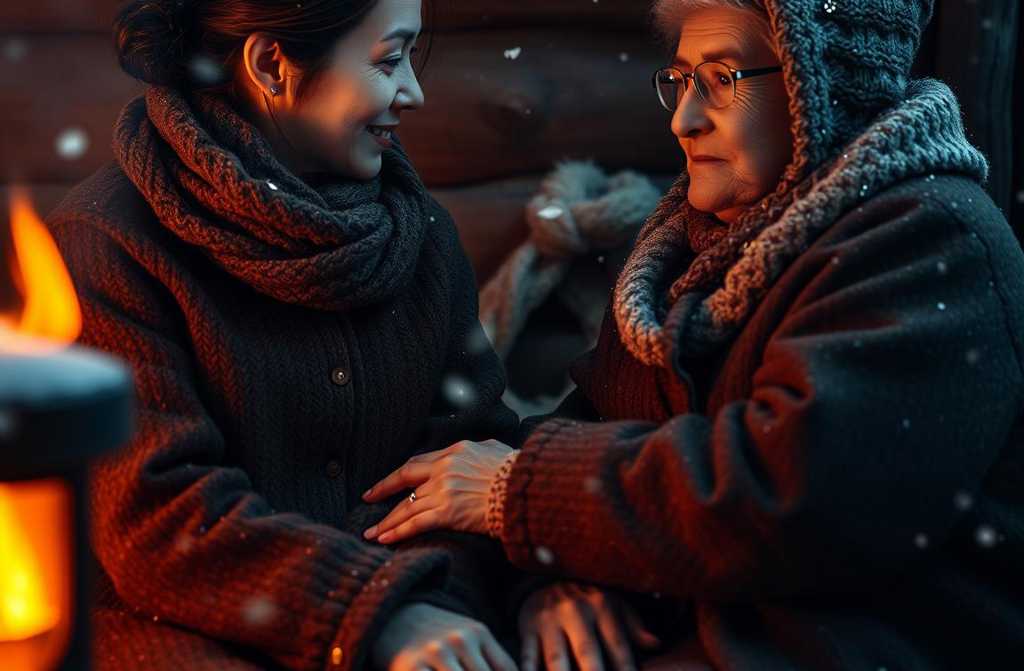 Emily and her mother-in-law sat huddled on the old bed, bundled up against the winter chill. The cottage had only just been warmed by the newly lit fireplace.