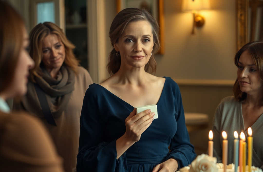 The pivotal moment came when they brought out the cake. Large and white, with delicate gold piping and tiny buttercream flowersstylish, not overly sweet. Everyone stood and sang. I blew out the candles. Applause followed.