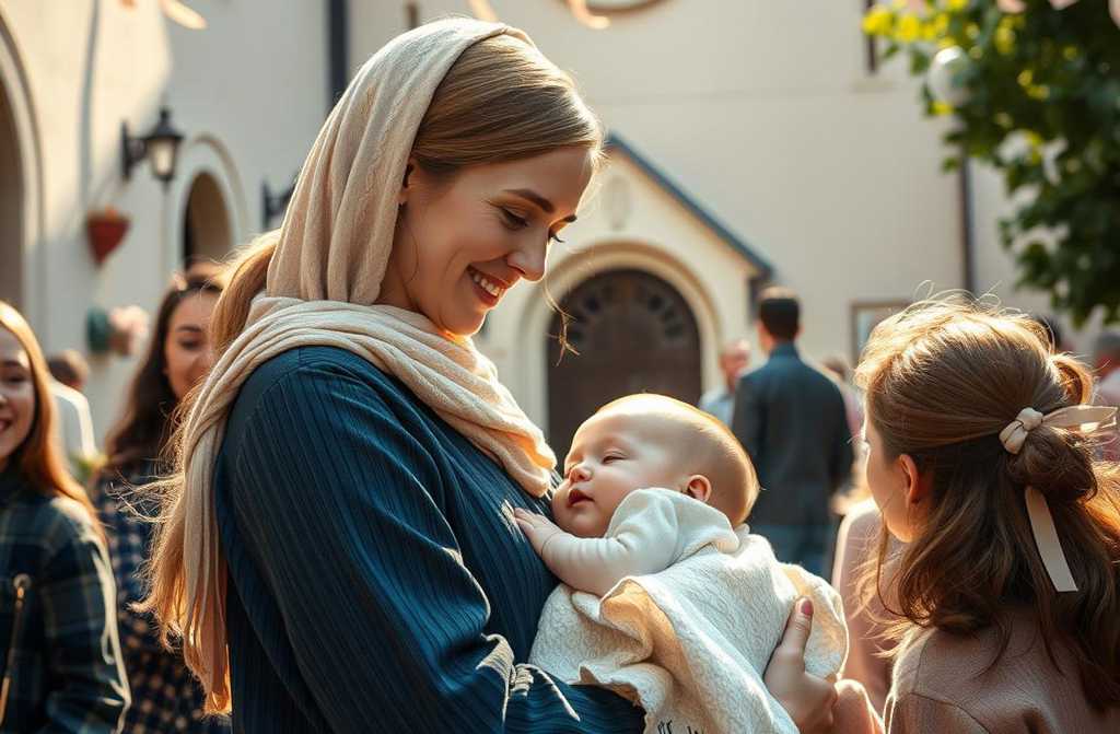 Now Kate, in a creamcoloured dress and lowheeled shoes, stands at the doorway of a cottage beside the church, holding Petey in her arms. Today Petey will be baptized, and Kate is terrified.