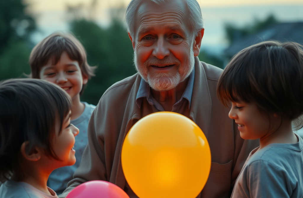 What on earth is that? he muttered, just as spotlights flickered on, bathing the scene. Emerging from behind the garden wall were his sons, their wives, grandchildren, and a host of relatives. Poppy swaggered in, arminarm with a lanky, bespectacled fellow named Nigel, whose lenses were thick enough to double as magnifying glasses. Everyone clutched balloons, squeaked through party horns, and blasted noisy airhorns, shouting, waving, and scrambling to hug him.