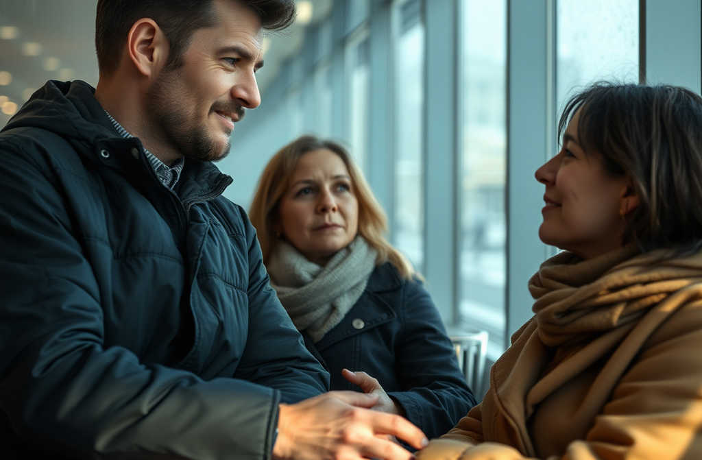 At the airport, as they waited to board, he sat beside her while the kids pressed their faces to the huge windows to watch the planes.