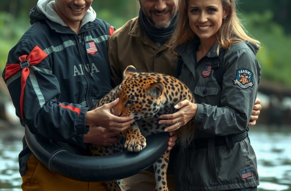 During severe flooding, a wild lynx was swept into a swollen river and began to struggle in the current. Local emergency responders were quickly alerted and raced to the scene, pulling the creature from the water.