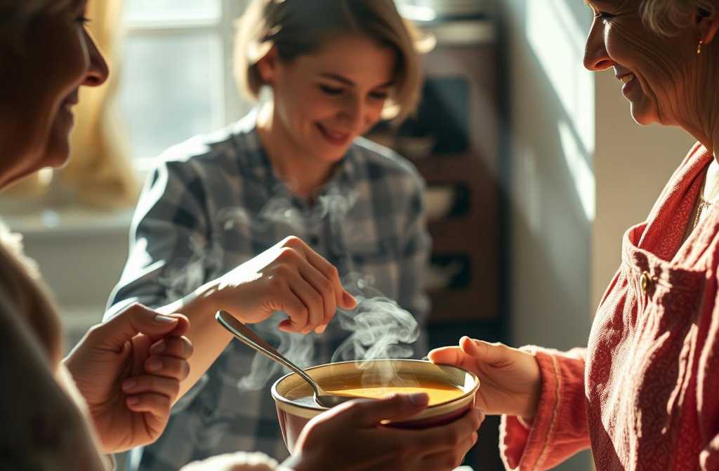 Listen, love, get up early tomorrow and make Mum a soup. Shell be coming from the country, tired and starving. It has to be farmers chicken you know Mums stomachs delicate now. She needs a proper, hearty broth, not that supermarket nonsense.