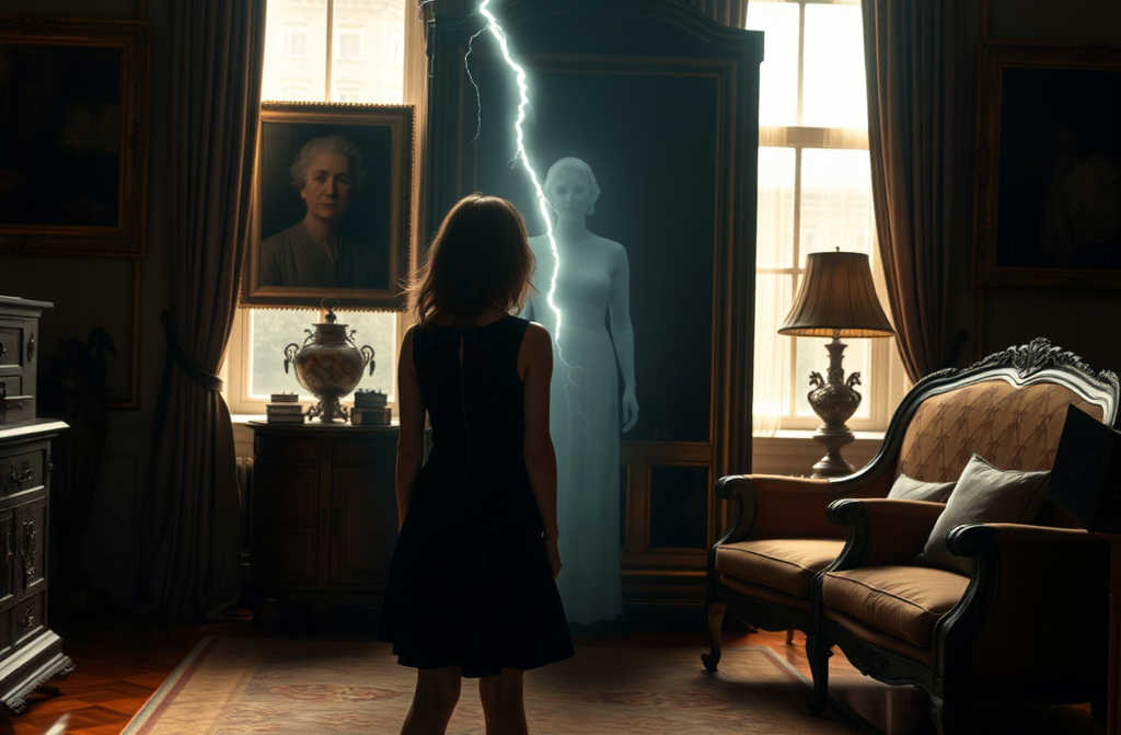 Her stomach dropped. In the photo, just behind her shoulder, was the faint outline of an old woman.