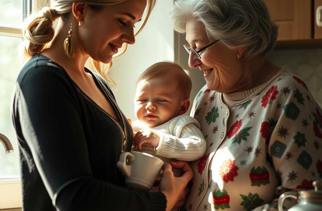 With the baby in our lives, the households dynamics shifted. Auntie Agnes visited often, bringing knitted booties; Margaret, who had studied home economics, began sewing tiny garments for the child. I would shuffle in the hallway, watching Emily bundle him in a soft blanket before heading out for a walk.