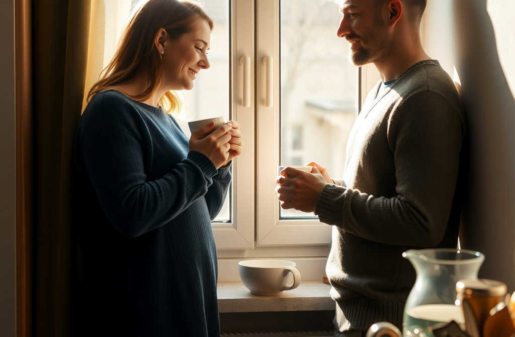 One evening, when darkness has already fallen and a few stray snowflakes tumble past the window, Rachel and Simon sit in the kitchen with steaming mugs of tea. An orange glow from the lamp pools across the table, lending an air of gentle seclusion. They drink quietly, each lost in their own thoughts, until Simon finally breaks the hush.