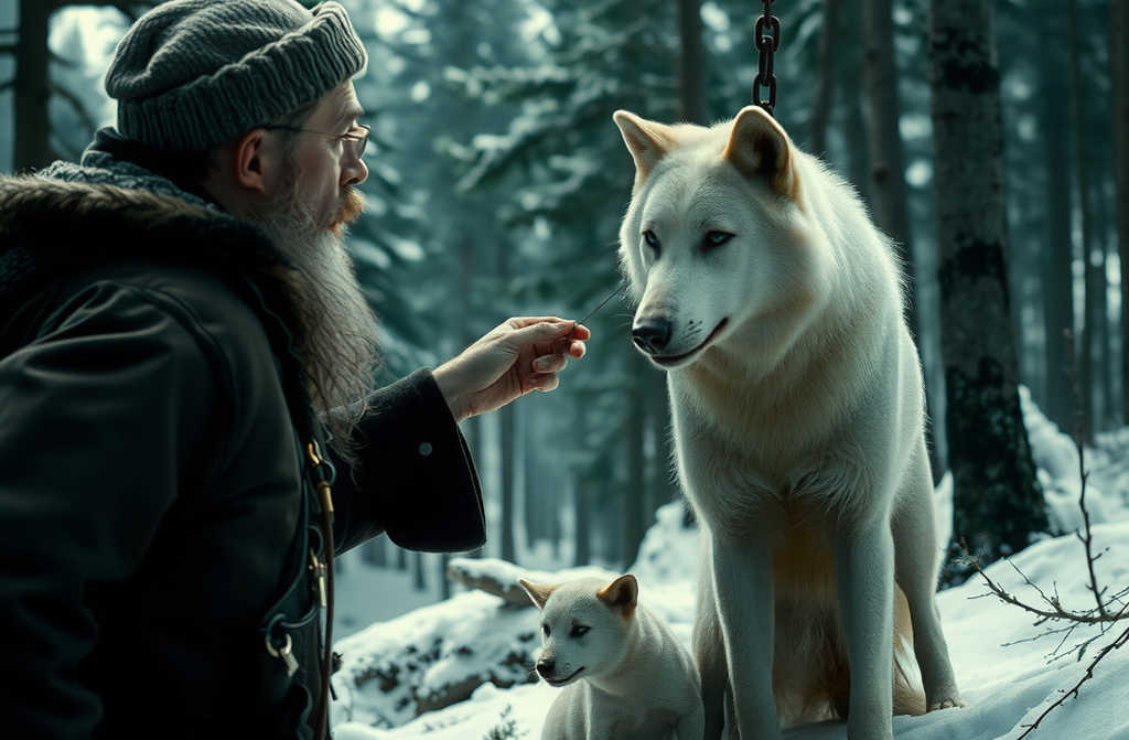 Hed nearly mistaken the white blur by the blackened old trunk for a trick of the light at first. Closer, he knew: it was the fabled northern wolf itself, caught in a trap meant for the slowest, most agonising death. The cable had already dug deep into her neck, and her pups huddled at her paws, barely moving from the cold.