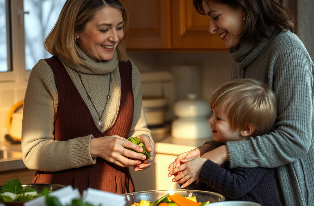 Her mother-in-law showed her. Then taught her how and when to salt, how to mix so the veg wouldnt turn to mush. Sophie circled, pinching sweetcorn straight from the tin.