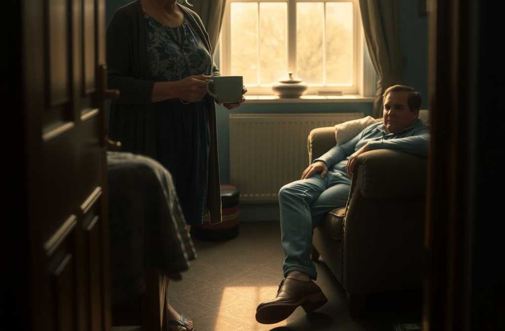 She blinked slowly, the words running together like watercolour ink, the house melting in dream-logic. She crossed the threshold, set the two mugs down with a tremor onto the coffee table. Timothy occupied the old settee, stiffer than the springs. He didnt look at her.