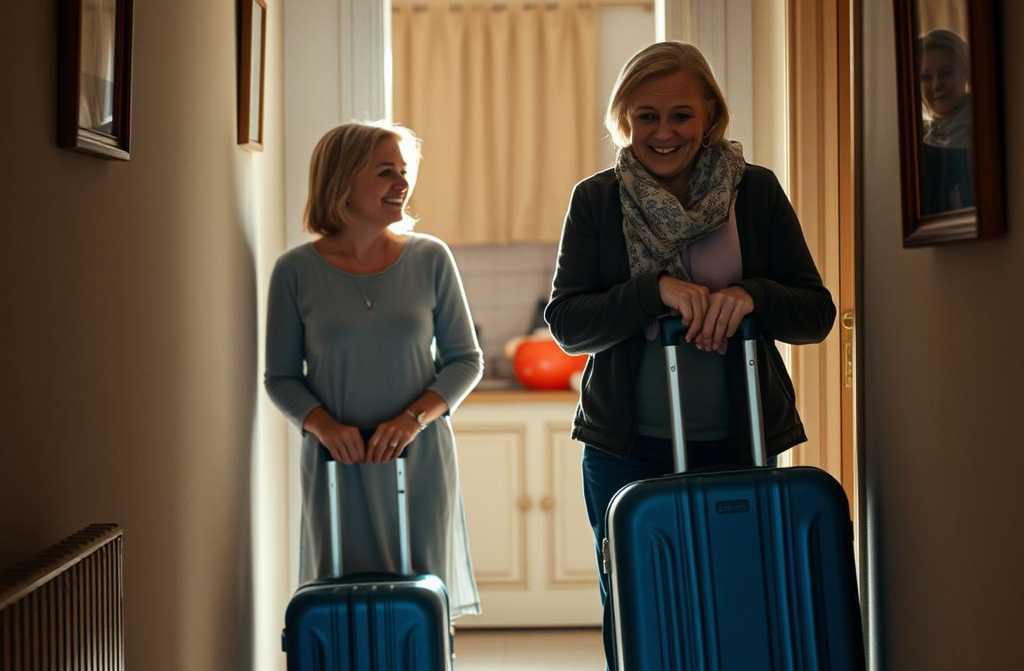 In the hallway stood her suitcase, the same blue travel case she took on holiday, its handle lifted as if it were about to be carried away.