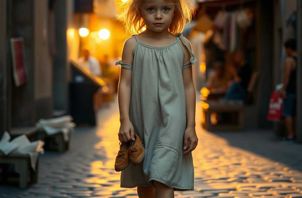 One evening, as the sun dipped over the market square, a foreign woman noticed Star darting between stalls, her feet dusty and bruised. The woman knelt, smiling, and asked why she wore no shoes. Star shrugged, staring at the ground.