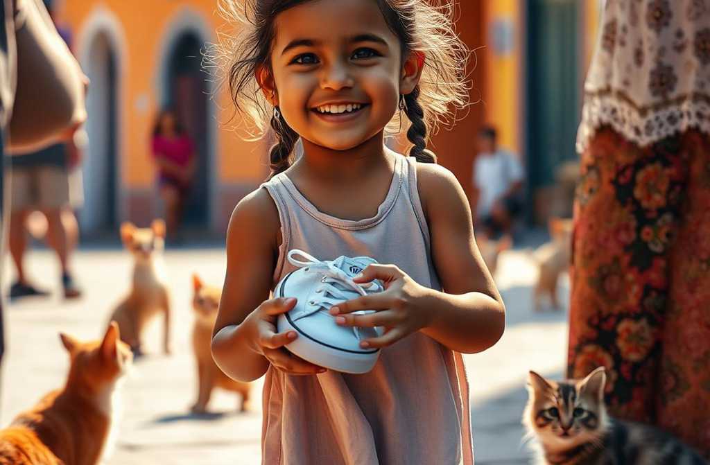 Touched by the girls honesty and the quiet dignity in her voice, the woman pulled a nearly new pair of trainers from her bag and handed them over. They were white, with a blue lightning stripe on the side, and they seemed to glow in the afternoon sun. Stella hugged them tight, as if they were a treasure entrusted to her. That evening, she refused to take them off, even to sleep, and carefully wiped them clean before bed while Oliver watched curiously and the neighbourhood cats sniffed at the strange new objects now part of Stellas world.