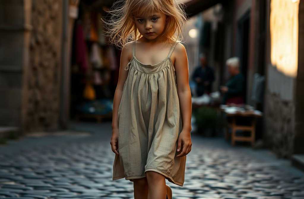 One evening, as the sun dipped low over the town square, a foreign woman spotted Ellie darting between market stalls, her feet dusty and bruised from the uneven ground. The woman crouched down, her smile warm but curious.