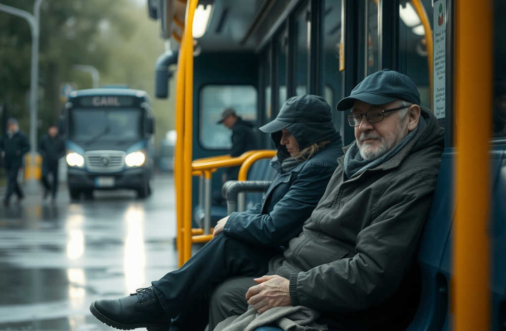 A bus rumbled quietly along the rain-soaked streets of Manchester, each passenger gazing absently through misted windows. The dull thrum of tyres and the heavy drizzle outside set a somber mood. Inside, no one seemed to pay much attention to anyone else; everyone was lost in their own daydreams and troubles.