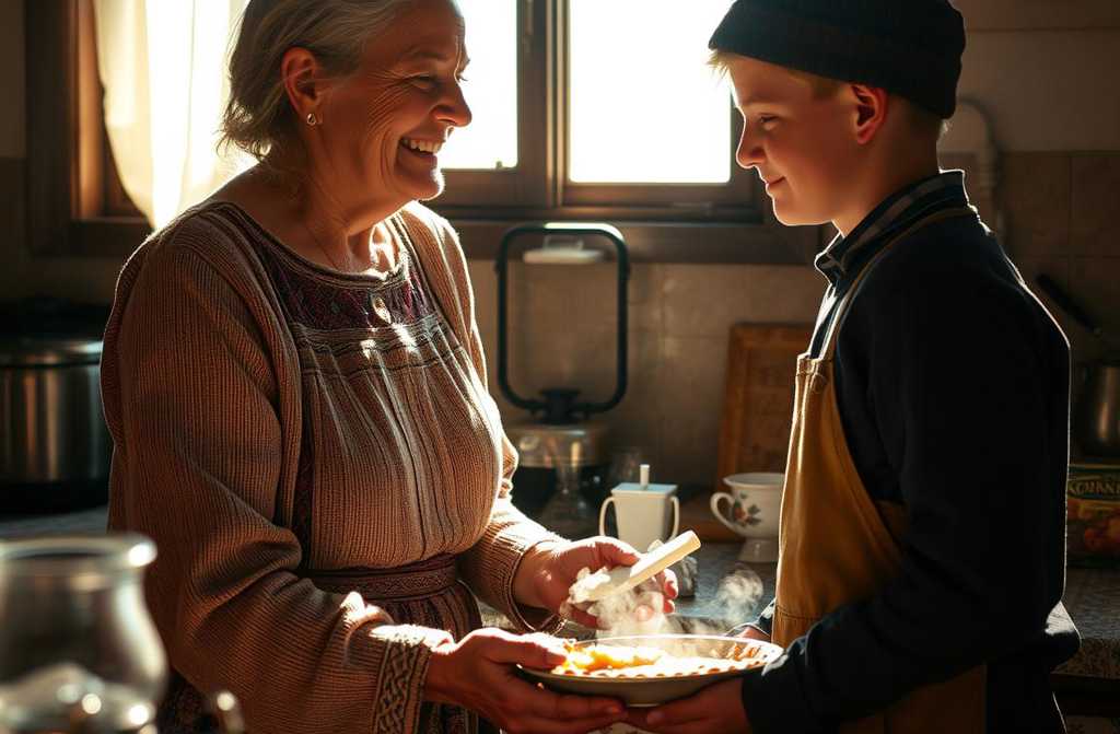 Tom studies well; Eleanor often sits beside him, nodding along when he does his homework, even though she doesnt understand the lessons. As he nears adulthood, he sees his mothers harshness toward his grandmother and father and grows uneasy. He frequently asks his grandmother to cook something tasty. Brianna, irritated, scolds, Youre such a picky eater, just like your father. Eat what I make, its not fit for royalty, and Tom lowers his eyes, remaining quiet.