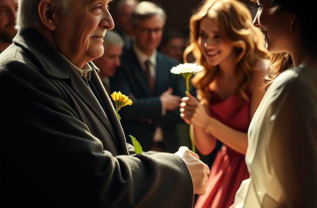 An elderly man stepped onto the stage. His hands were rough, his gaze gentle.