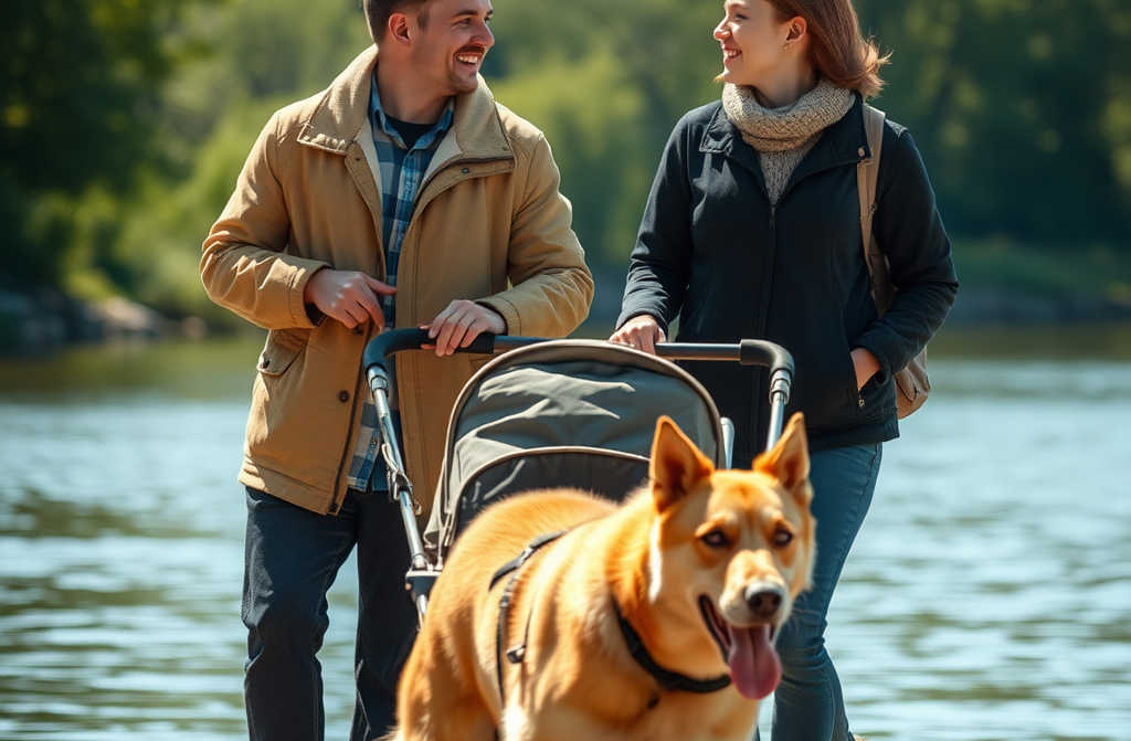 He bounded away to the water in great leaps. A couple of minutes later, the baby started fussing in the pram, and the dog was instantly back, just as fast, peering in.