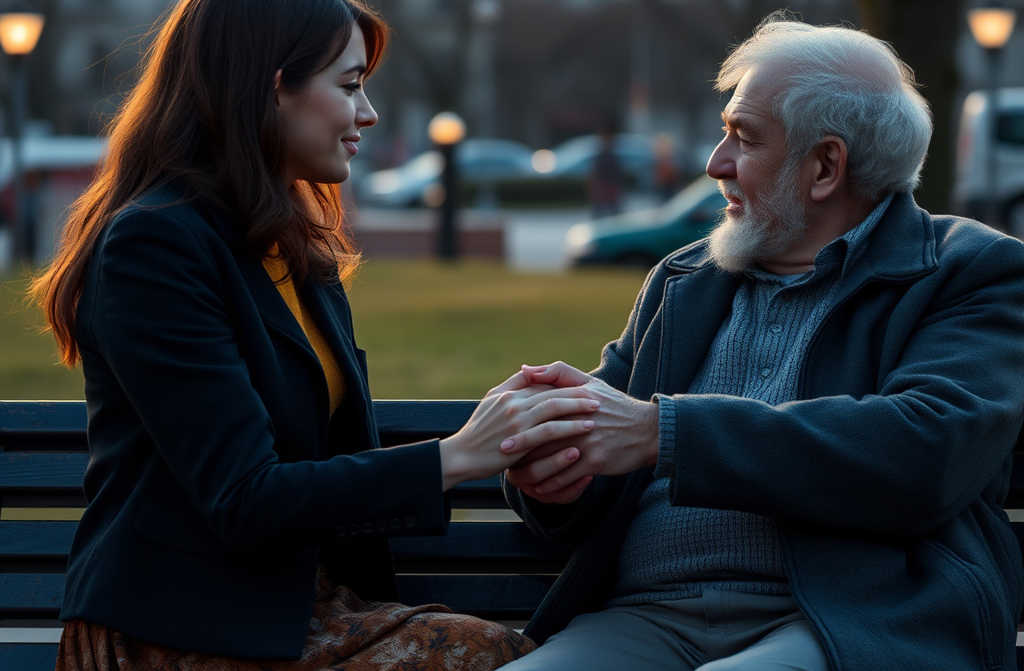 He closed his hand around the ring, breath shaking. They sat, side by sidefather and daughter, separated by decades of silenceas the fountain played and the city moved gently around them.