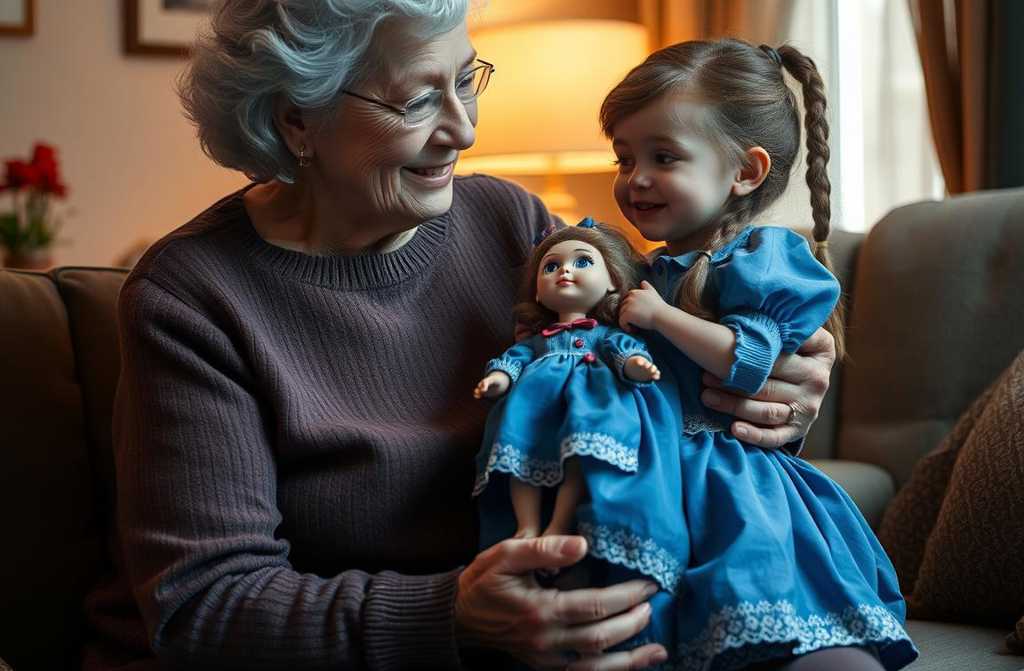 Emily reluctantly passed the doll to the other grandmother, Margaret, who began to examine it with reverent curiosity.