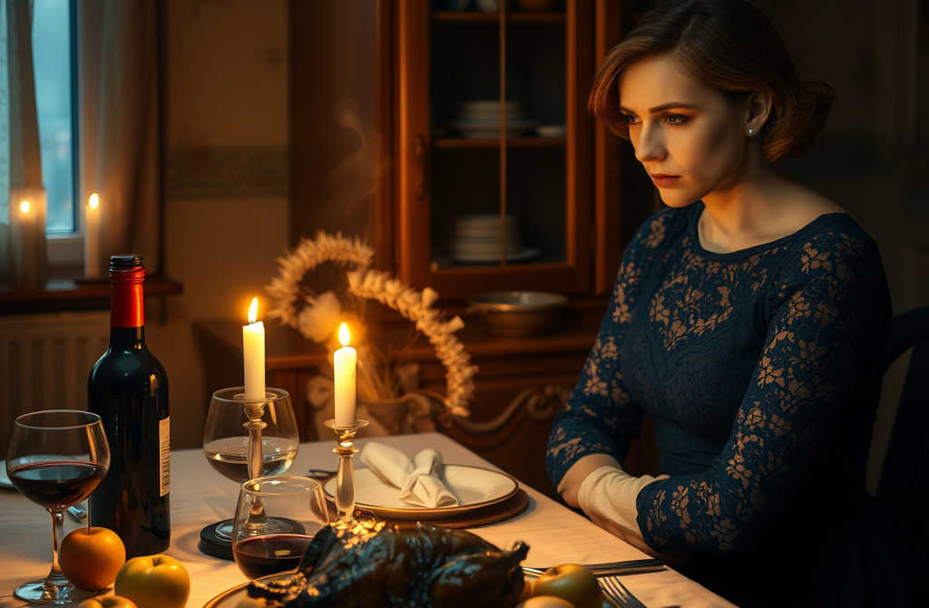 “Set out the wine and glasses,” Elizabeth said, but her voice wavered. She checked the clock again8:30. The duck was cooling, the sauce thickening, and the candles dripped wax onto the linen.