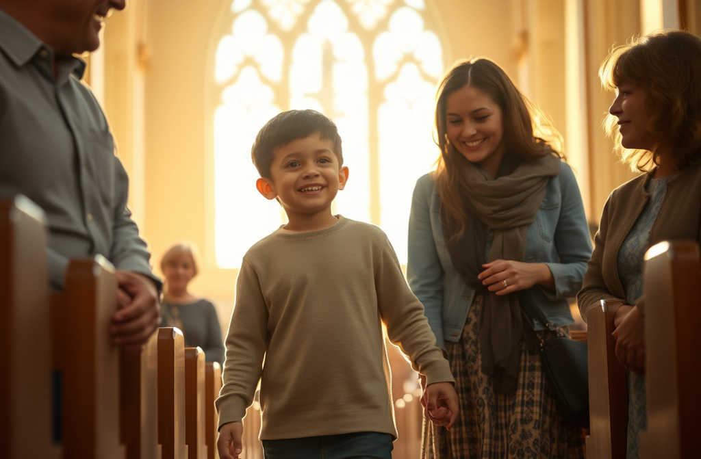 The boy waited before the altar, hope shining in his eyes.
