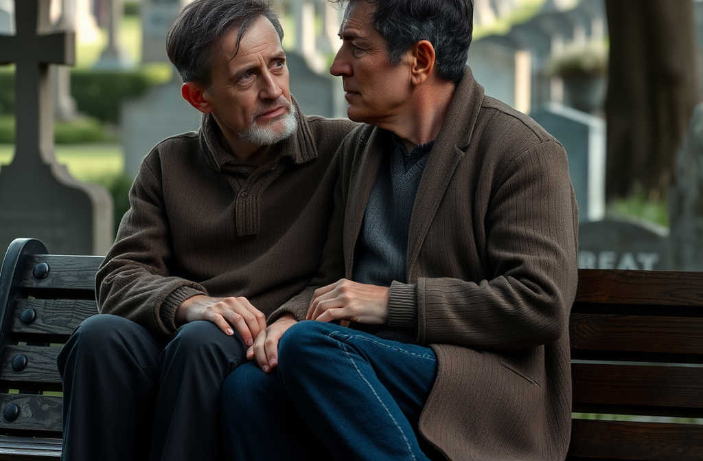 Inside, a gentle breeze rustled the trees, and the stillness was almost tangible. If only there wasnt so much pain in that peace. Dad noticed a familiar figure sat on a bench in the distance, near Mums graveit had to be me. As he approached, he overheard me: