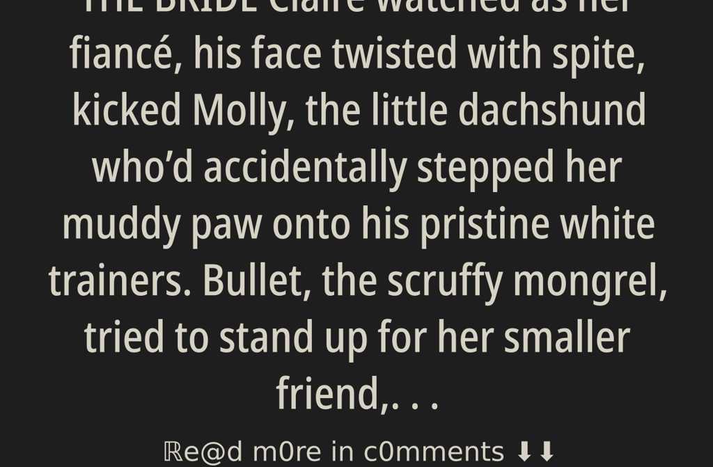 Claire watched as her fiancé, his face twisted with spite, kicked Molly, the little dachshund whod accidentally stepped her muddy paw onto his pristine white trainers. Bullet, the scruffy mongrel, tried to stand up for her smaller friend, only to be dealt a sharp smack across the muzzle with a heavy leather lead. Now Claire understood exactly why her cats and dogs always shied away from Thomas.