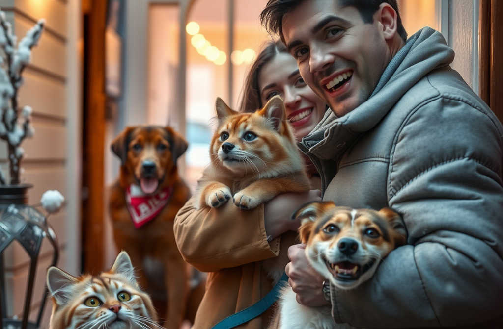 Arthur heard scratching and muffled barks outside Evelyns door. He opened it to find a triumphant Minnie in her scarf, Bonnie right behind, the cats and Mouse trailingall snow-dusted, all exuberant.