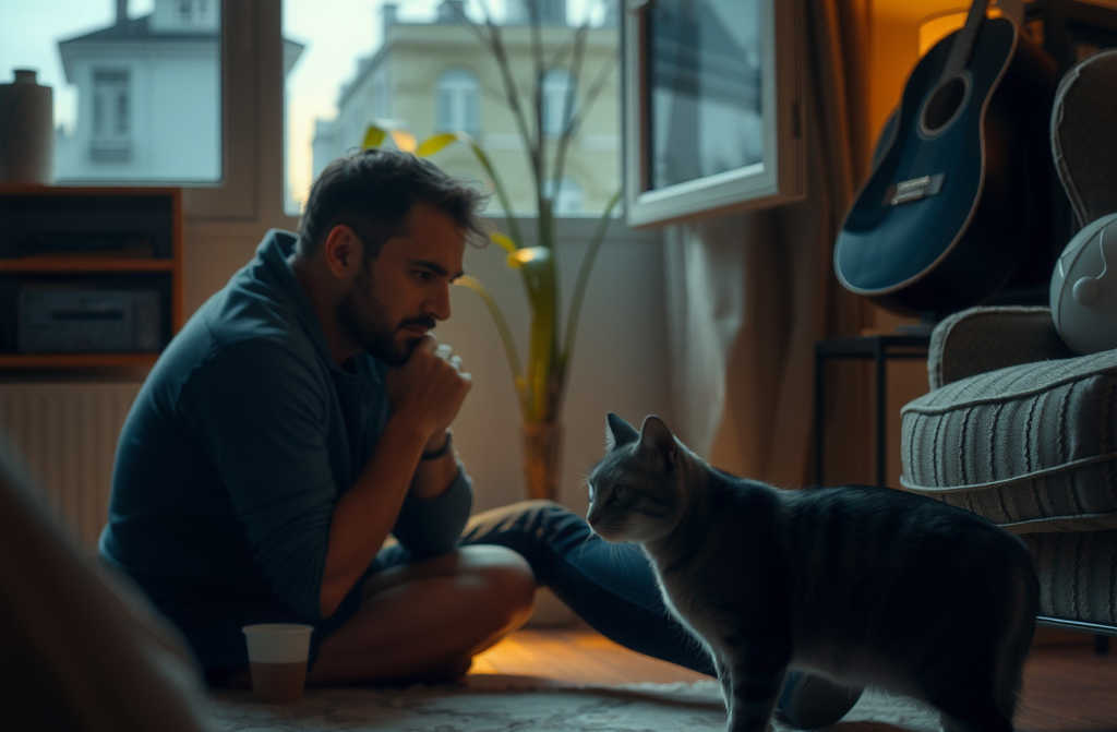 We sat there nearly an hour: a man and a cat, separated by a metre of laminate, joined by a silent pact. It was the most intimate silence Id felt in years.