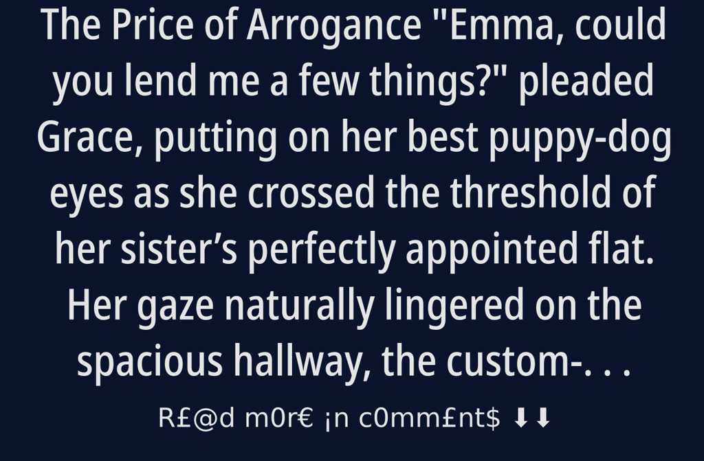 “Emma, could you lend me a few things?” pleaded Grace, putting on her best puppy-dog eyes as she crossed the threshold of her sisters perfectly appointed flat.