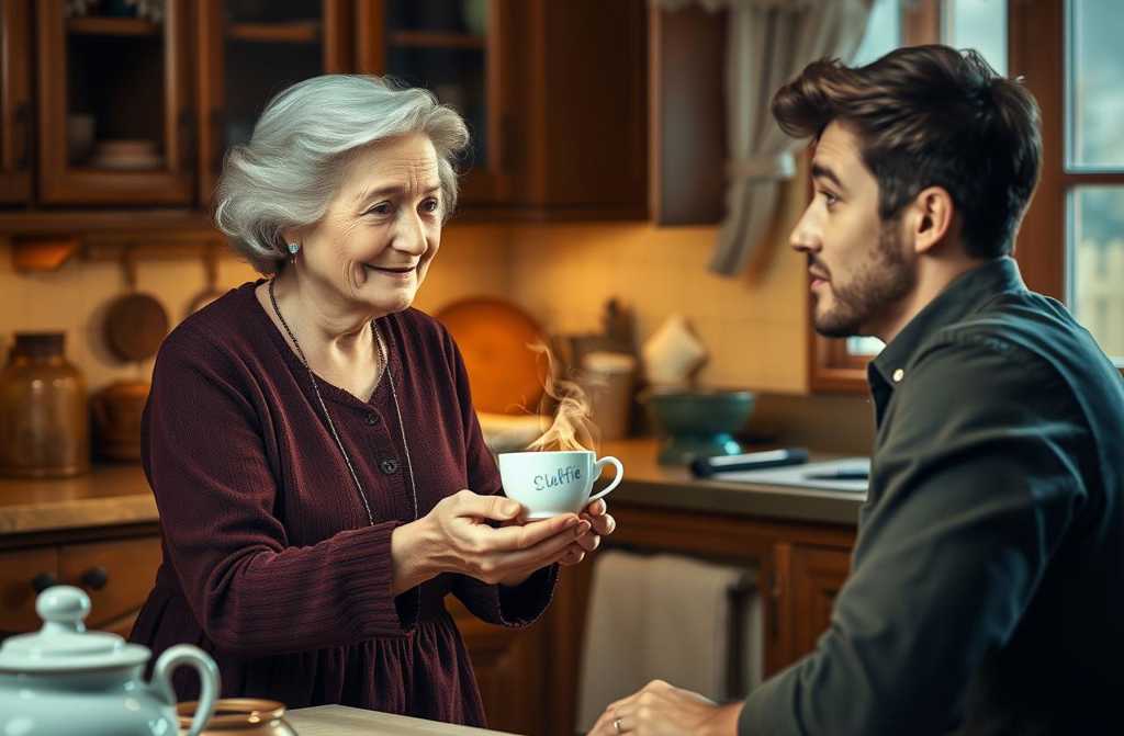 “I’ll take one,” the old woman announced suddenly. “But first, let’s have a cuppa. No fun drinking alone, is it? With company, tea tastes like honey. Five minutes, that’s all.”