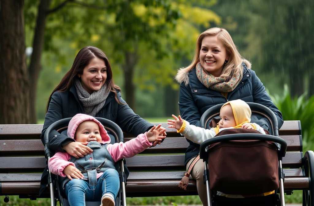 Mark reached out clumsily, trying to grab Rosies finger, while Ellie twirled in her pram, clearly curious about the commotion.
