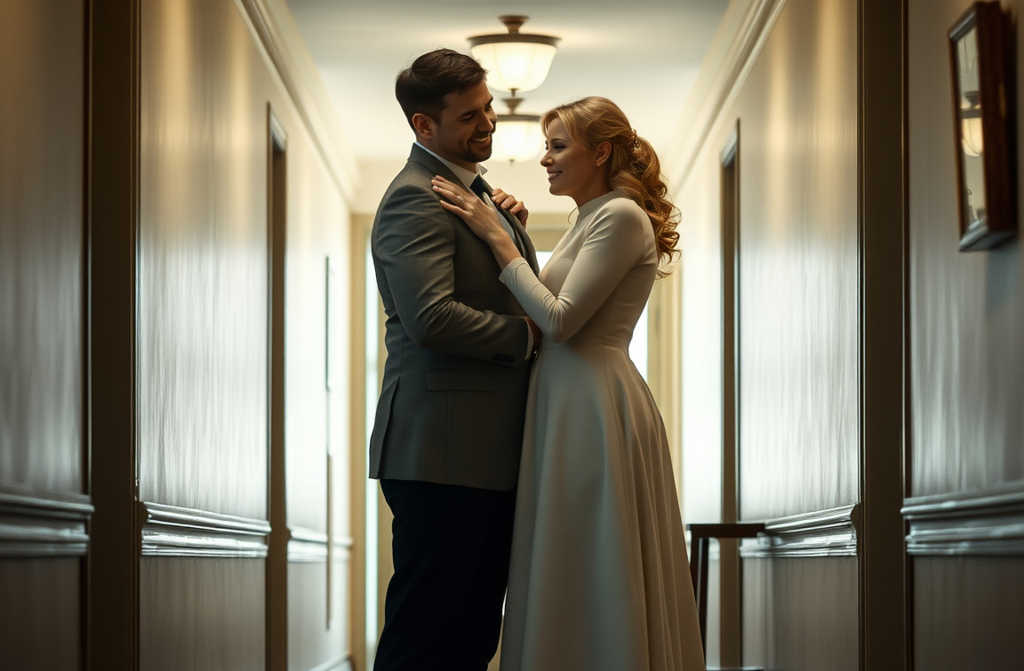 We stepped out into the corridor. He straightened my slightly crooked veil.
