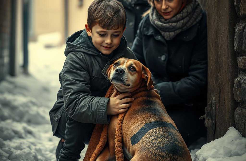 Mom, theres a dog in the rubbish skip. Its injured. The skip isnt a normal one; its like a hole under the building. I tried to help, but it snarled. It cant get up, Mum, and its freezing out there. Trash is piled on top of it.