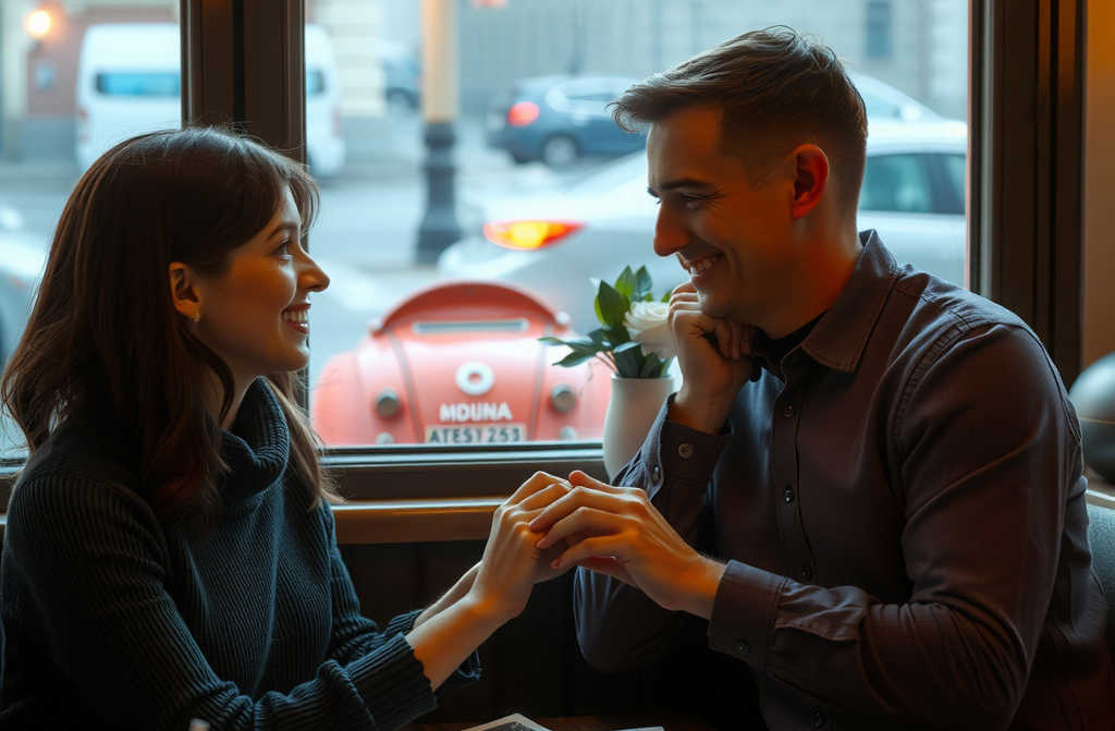 Three years have passed since that first accidental encounter in the café, but that place feels like sacred ground. Tonight, were back at our special spot by the window. Rain spatters the glass, but inside theres a cocoon of golden light, soft laughter, and the smell of fresh bread.
