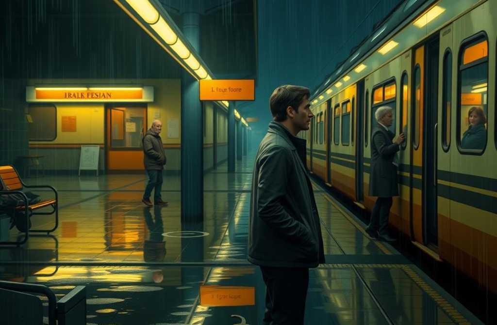 I wandered along the platform, half hoping I’d find another path, another chance, another turn. But there was nothing—just wet asphalt, murky puddles, and my own reflection staring back. The rain had just started—light, cold, barely noticeable. I stepped into the waiting room—old, drafty, cracks in the ceiling, the smell of rust, damp, and time that had stopped here.