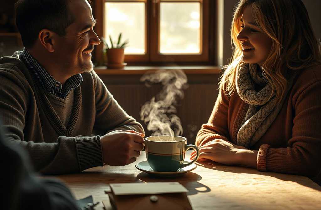 The kitchen smelled of coffee and toasted bread. Emma, in a cosy bathrobe, hair loosely tied, was pulling slices from the toaster. On the table lay a spread newspaper and his favourite mug.