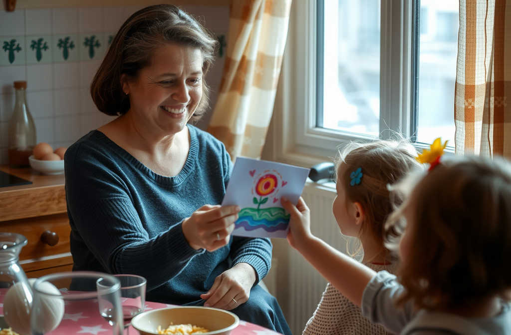 Lily showed her the drawinga woman in a flowing dress with a crown, surrounded by flowers.