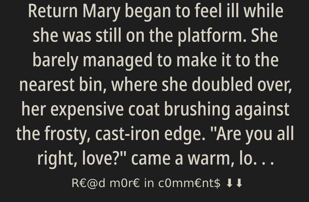 The train started to move. Grey blocks, garages, snowy fields slid past the windows. And suddenly, Mary noticed: she didnt have a headache. She wasnt nauseous. She didnt need to close her eyes and wish it all away.