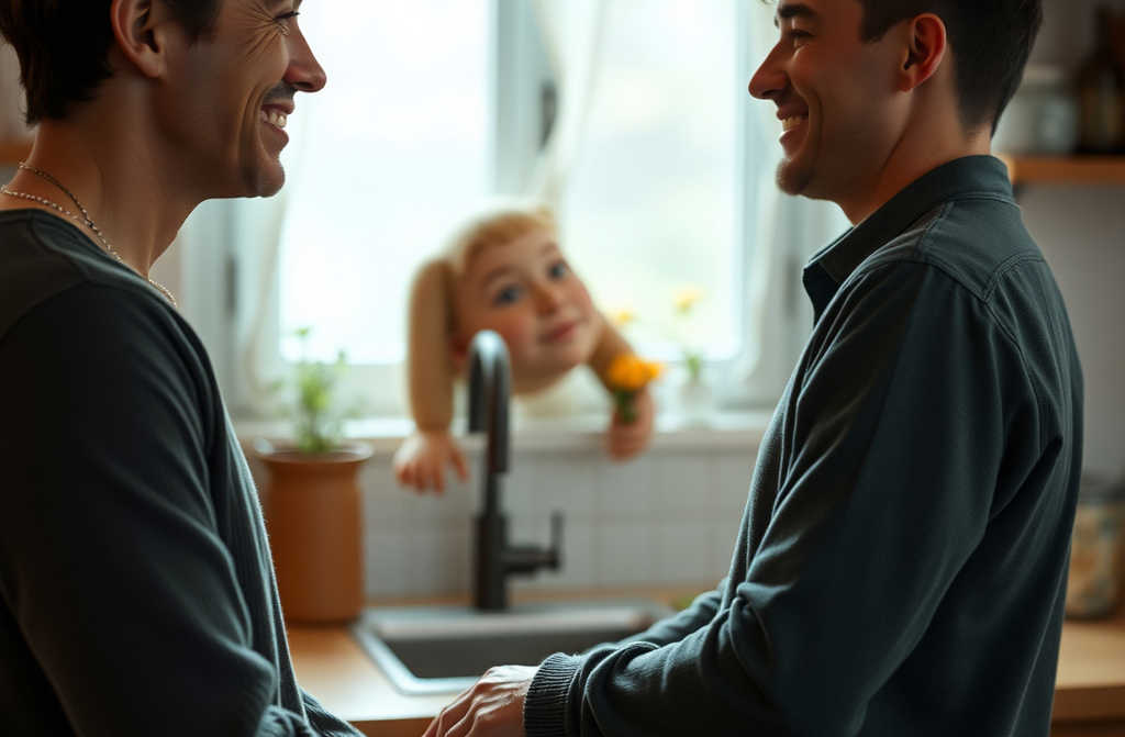 Andrew steps into the kitchen. She looks up, eyes brimming.
