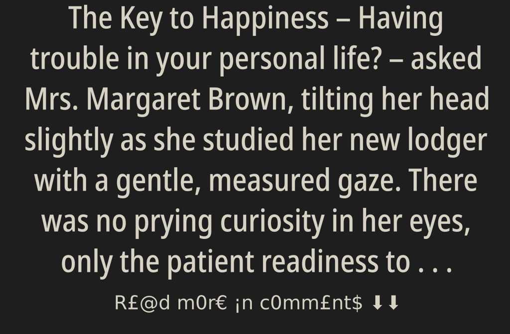Having trouble in your personal life? asked Mrs. Margaret Brown, tilting her head slightly as she studied her new lodger with a gentle, measured gaze. There was no prying curiosity in her eyes, only the patient readiness to listen.