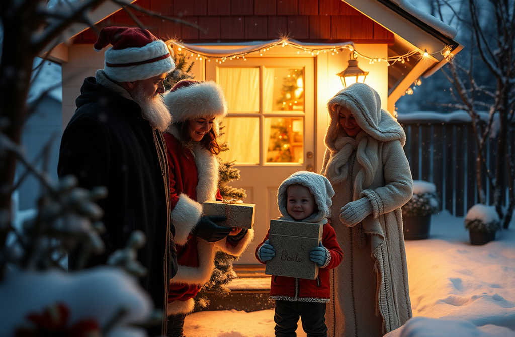 David picked up the tree, Alice the gift sack, and they quietly made their way up the garden path and knocked on the door.