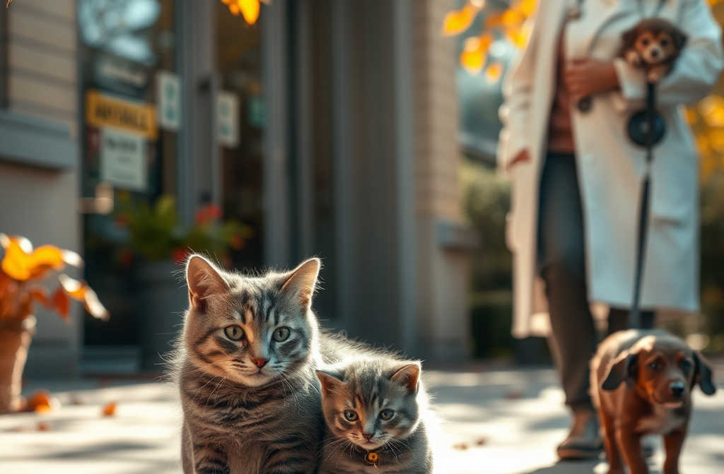 The little grey cat sat by the veterinary clinics door, mewling pitifully. At her feet lay a tiny kitten, barely moving.