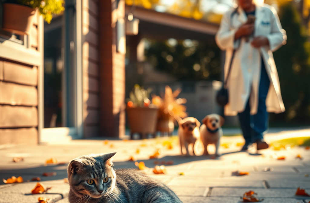 The small grey cat sat by the door of the veterinary clinic, weeping softly. At its paws lay a tiny kitten, barely breathing