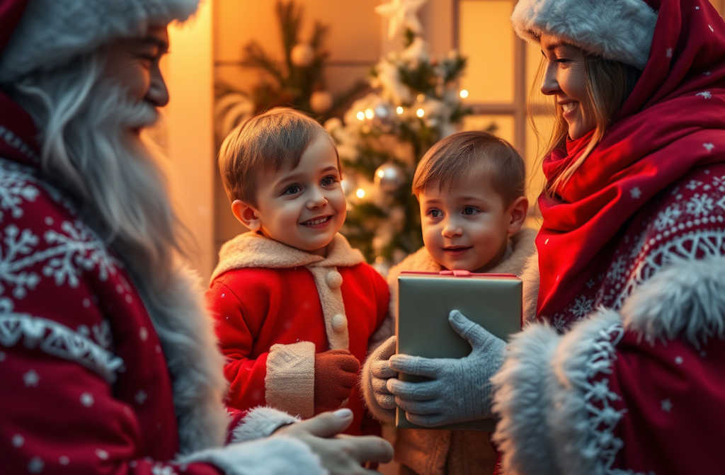 They called up friends for the Father Christmas outfit and loaded all the gifts in a big bag. When evening fell, David and Emily dressed up, crammed the presents and the tree into the boot, and set off for the address on the envelope. Harry stayed with his grandparents.