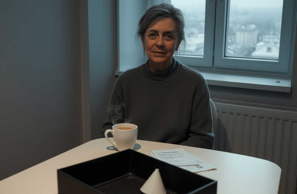 The morning floated in grey light, the coffee machine clicked, steam slowly rising against the window.