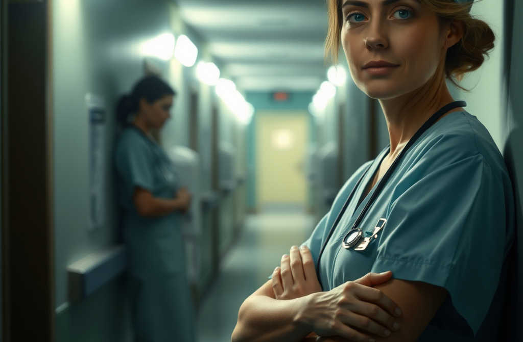 Just then, the door swung open and a nurse came out. She was young, tired, her shoes well-worn and soft. She walked right to him.